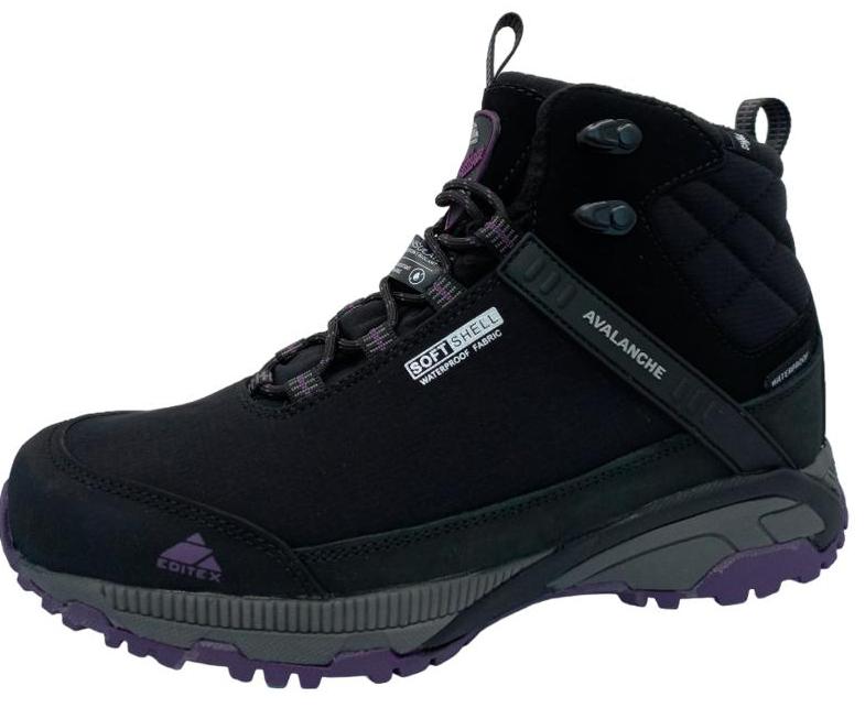 Удобные и стильные женские полуботинки прекрасно подходят для использования как для занятий спортом, так и в качестве повседневной обуви. Женские ботинки Avalanche изготовлены из высококачественных материалов, благодаря которым обеспечивается комфорт при носке и долговечность эксплуатации обуви. Верх ботинок выполнен из натурального нубука и инновационного материала SoftShell, который сочетает высокую эластичность и оптимальную прочность, надежно защищая от непогоды. Для большей защиты от снега и влаги все детали обуви обработаны стойким водоотталкивающим составом. Изнутри ботинки выполнены с использованием мембранной ткани, которая обеспечивает водонепроницаемость, сохраняя воздухопроницаемость. Утеплитель Thinsulate отлично удерживает тепло, защищая от холода даже при температуре до – 30 градусов, что делает данные ботинки отличным решением для долгих прогулок зимой. Эргономичная форма колодки обеспечивает плотную и комфортную посадку на ноге. Съемная мягкая стелька амортизирует шаг, гарантируя комфорт и удобство во время носки. Стелька пропитана специализированным раствором, предотвращающим развитие бактерий и появление неприятных запахов. Надежная резиновая подошва обеспечивает оптимальное сцепление с поверхностью, исключая возможность скольжения, легко поддается чистке. Ботинки выполнены в черно-фиолетовой цветовой гамме.Характеристики: